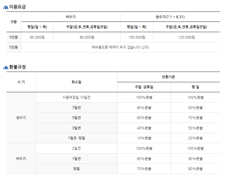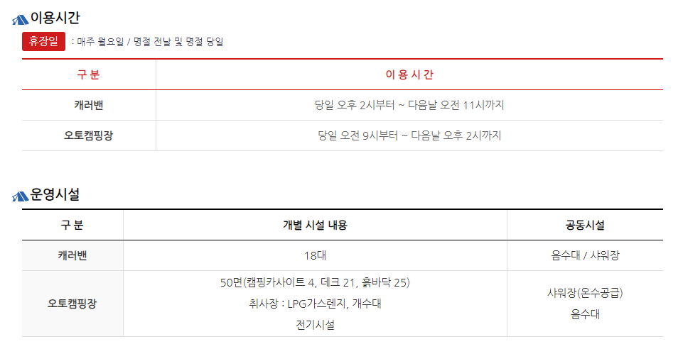 - 카라반과 텐트를 사용하는 오토캠핑장의 이용시간대가 다르니 꼭 확인하셔야 합니다.