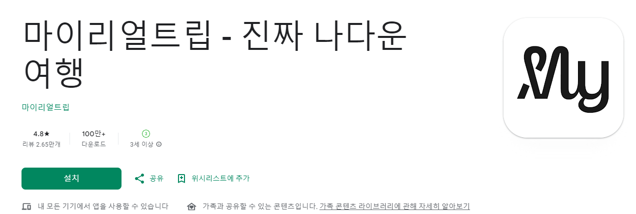 구글 플레이 스토어에 마이리얼트립을 검색