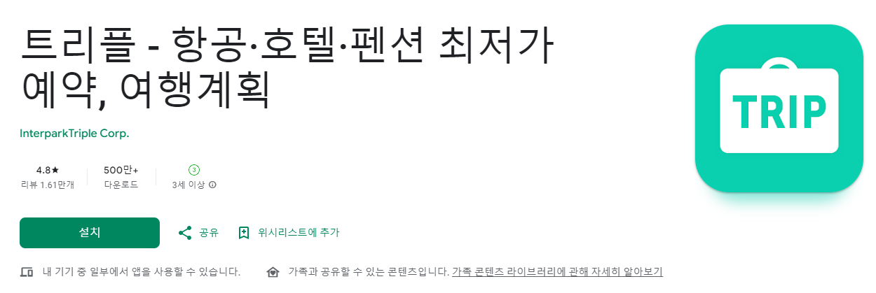 500만 다운로드를 보면 이미 입증된 여행 계획 어플이란 생각이 들어요.