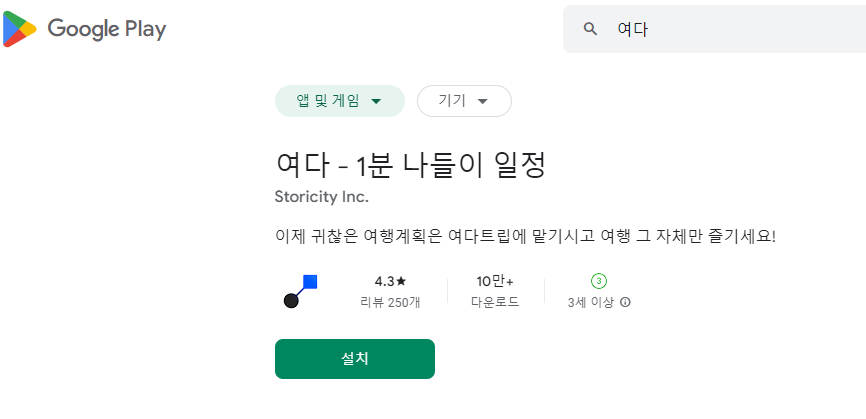 구글 플레이 스토어에 여다를 검색