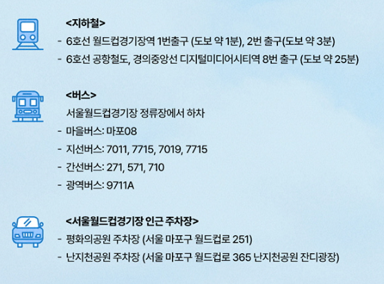 - 장소 : 서울월드컵경기장( 서울특별시 마포구 월드컵로 240)