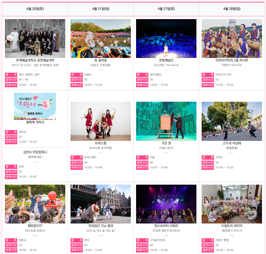 - 기간 : 2024. 4. 20(토)~2024. 4. 28(일)
