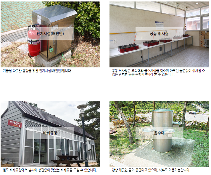 - 샤워장에 온수공급이 잘 되었습니다. 음수대, 취사장, LPG가스렌지, 개수대, 전기시설 등 편리합니다.
