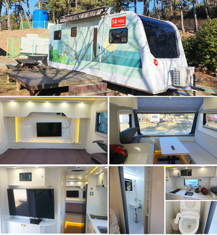 - 카라반으로 캠핑을 즐기실 수도 있는데 카라반이용요금은 야영장 이용에 비해 사용료는 꽤 높은 편이지만 일반 타지역의 카라반 이용료에 비하면 비싼편은 아닌듯 합니다.